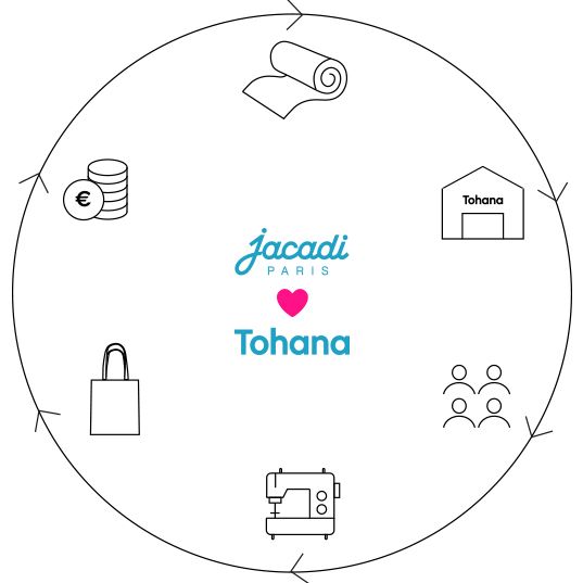 Quand Jacadi s’associe à l’Association MalgacheTohana, cela donne les jolies créationsJacadi ♥ Tohana. En acquérir une, c’est soutenir un projet qui accompagne les mamans sansressources vers le retour à l’emploi. Une leçon de vie et de solidarité pour ces femmes qui, à travers la transmission d’un savoir-faire local, peuvent enfin envisager, pour elles et leursenfants, un avenir plus joyeux.